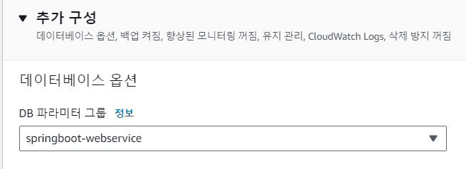 파라미터 그룹이란 DB 옵션을 설정하기 위해 AWS에서 제공하는 서비스입니다.