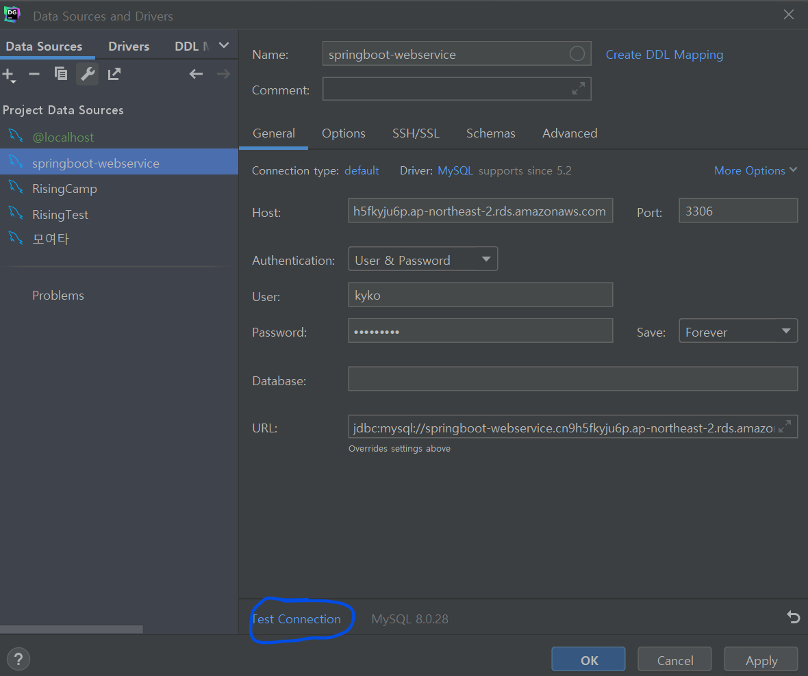 주의! 만약 여기서 Test Connection이 계속 안된다면 아래와 같이 해보기!