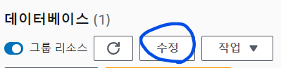 10. 만든 RDS 인스턴스 선택 후, 수정 클릭