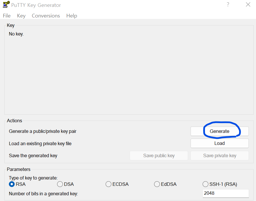 PuTTYgen을 실행시켜 Generate를 클릭하면 키를 생성합니다.