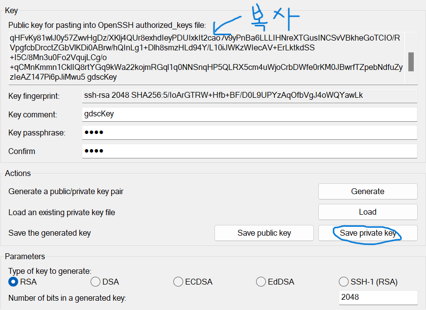 - Key passphrase: 비밀번호