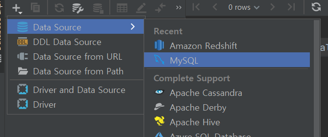 2) Datagrip실행 -> [+] -> Data Source -> MySQL