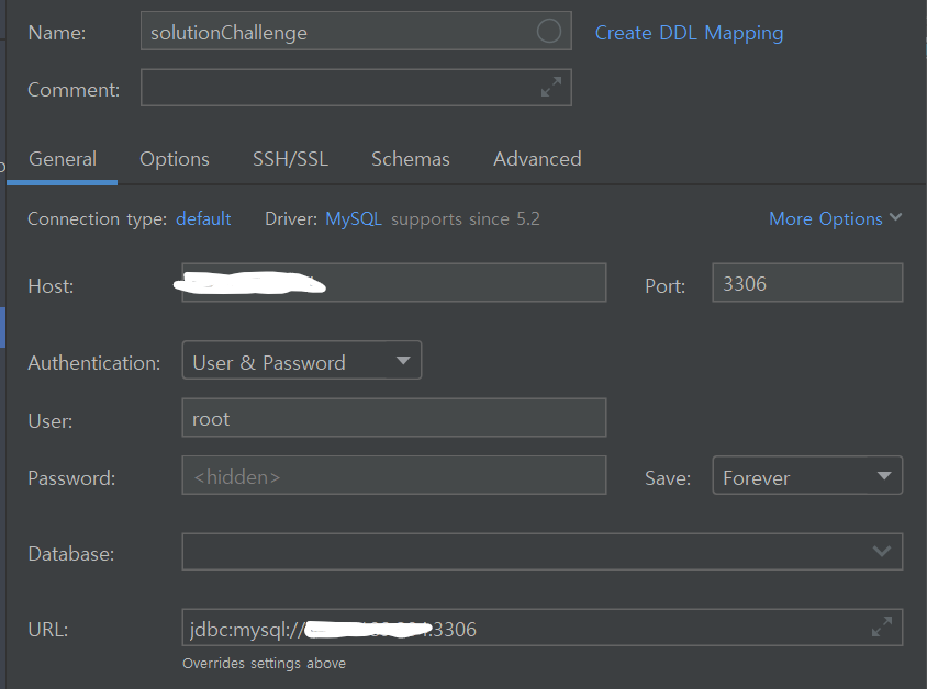 - Password: DB 인스턴스 생성 시 입력한 비밀번호
