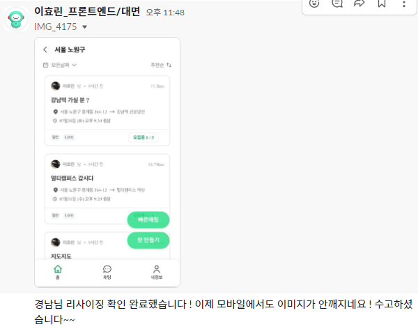 이미지 최적화가 되지 않아 프로필 사진이 하얀색으로 표시되는 문제가 발생했습니다.