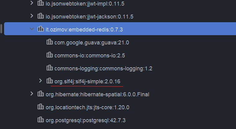 it.ozimov:embedded-redis:0.7.3 버전의 경우, org.slf4j를 포함하고 있습니다.